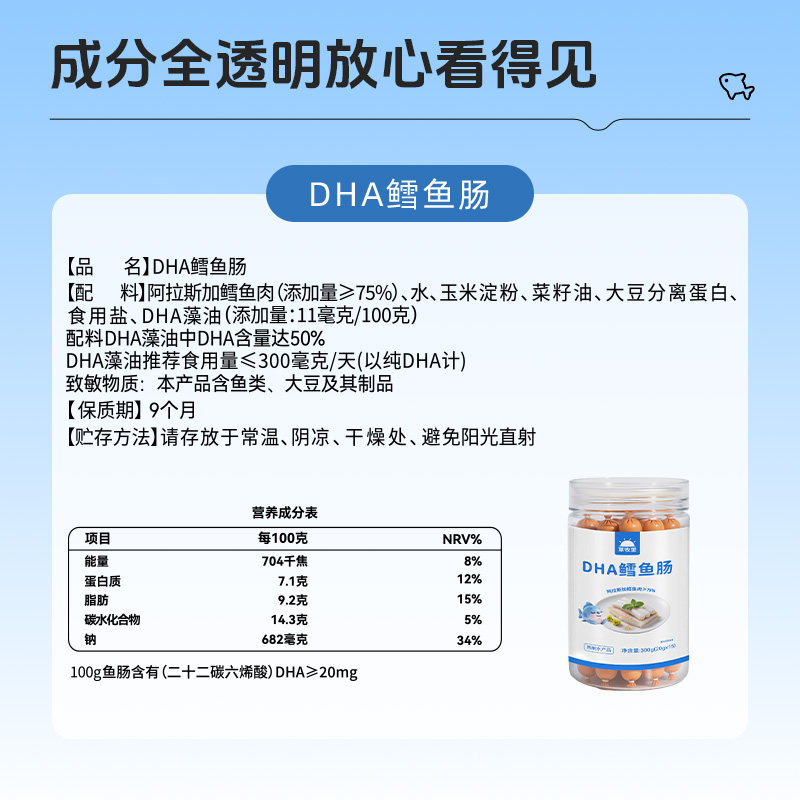 草牧里DHA鳕鱼肠阿拉斯加原料藻油0添加蔗糖独立小包官方旗舰店