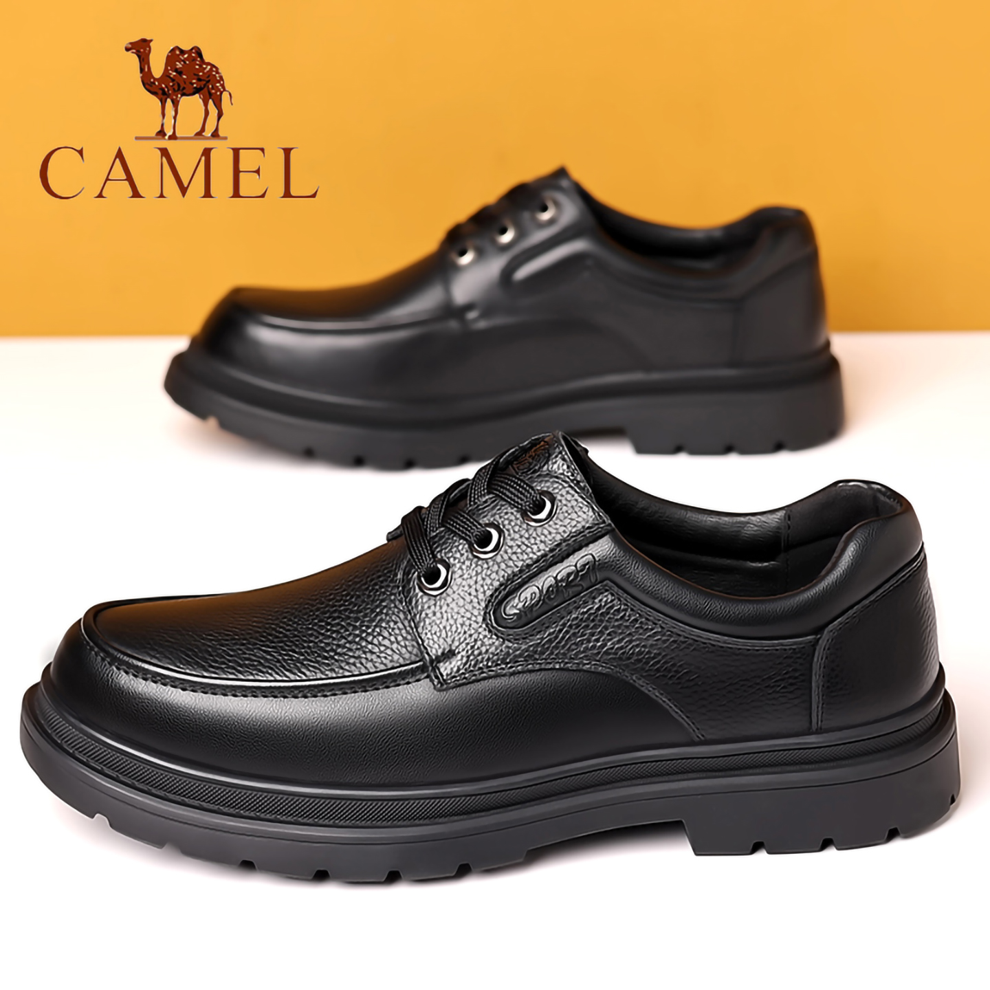 Camel/骆驼男鞋真皮皮鞋2025新款系带软底牛皮透气商务休闲爸爸鞋
