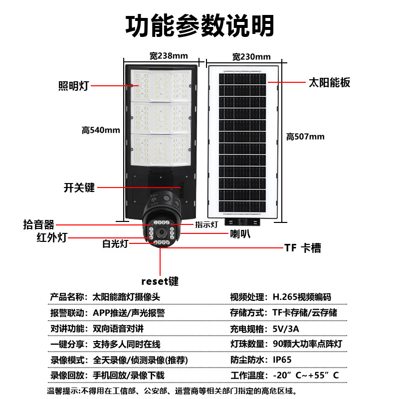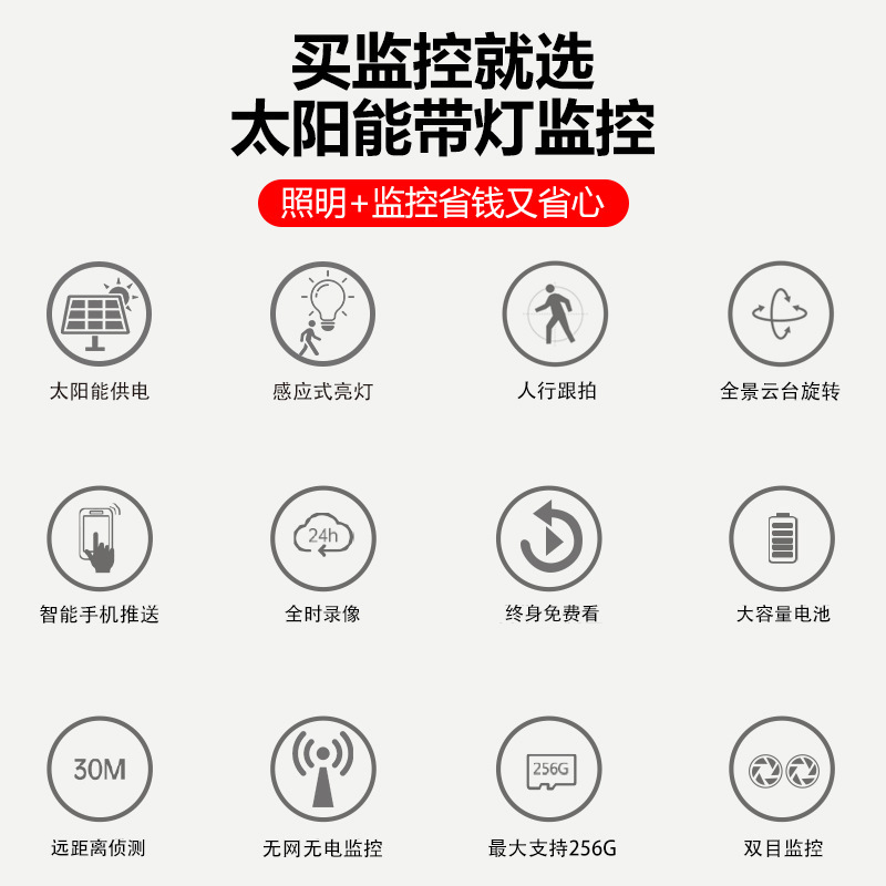 太阳能路灯监控摄像头一体机长续航高亮安防监控爆款人体感应家用