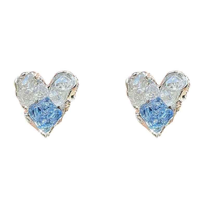 925银针蓝色渐变爱心耳钉女韩版ins小众百搭时尚可爱项链简约耳饰