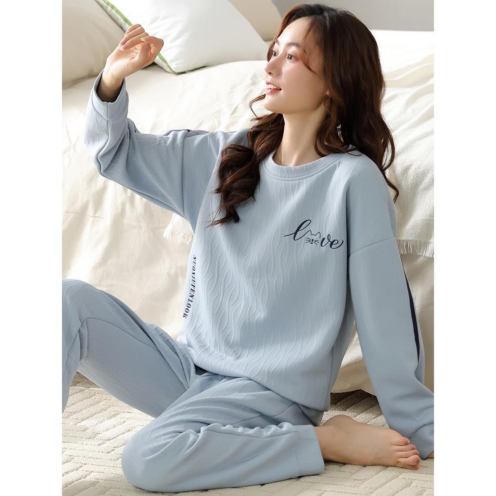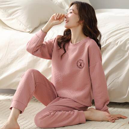 日本GP秋冬季女士薄夹棉睡衣保暖纯棉夹层气质加厚套头家居服套装