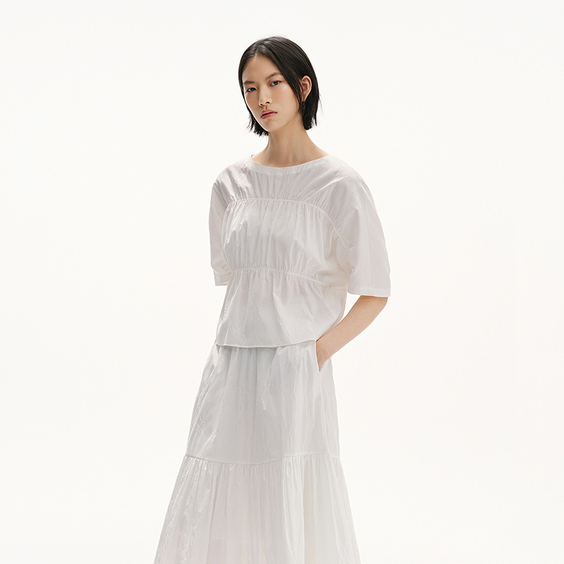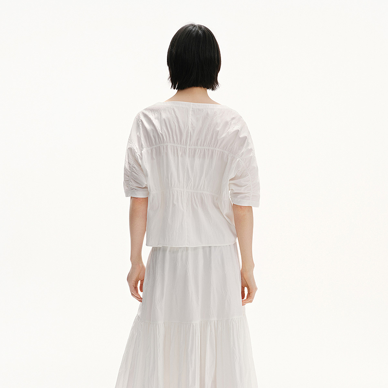 播商场同款收腰短袖白衬衫女25夏日新款中式气质衬衣BDS2HD2429