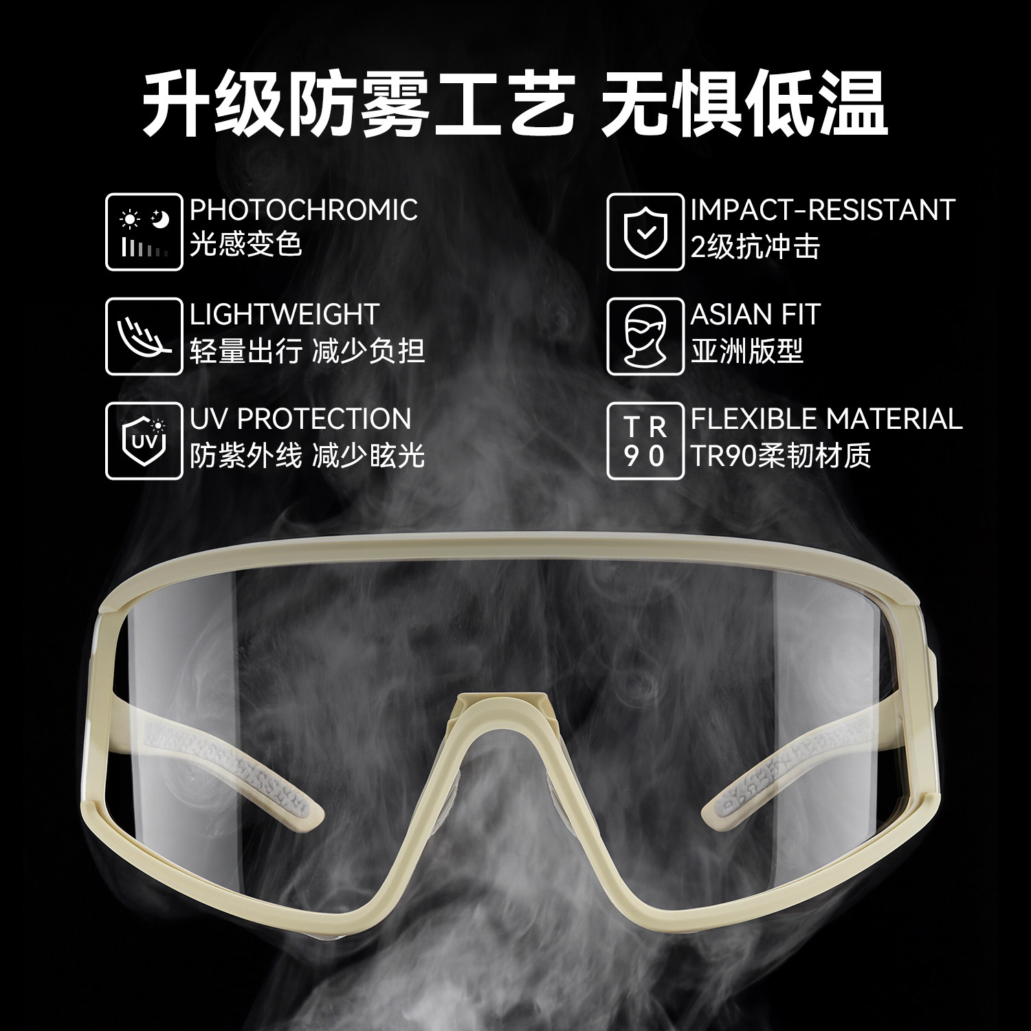 洛克兄弟骑行眼镜变色偏光防雾