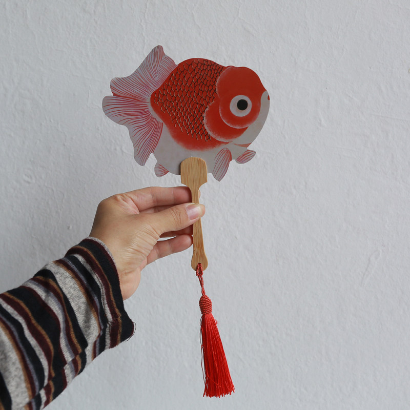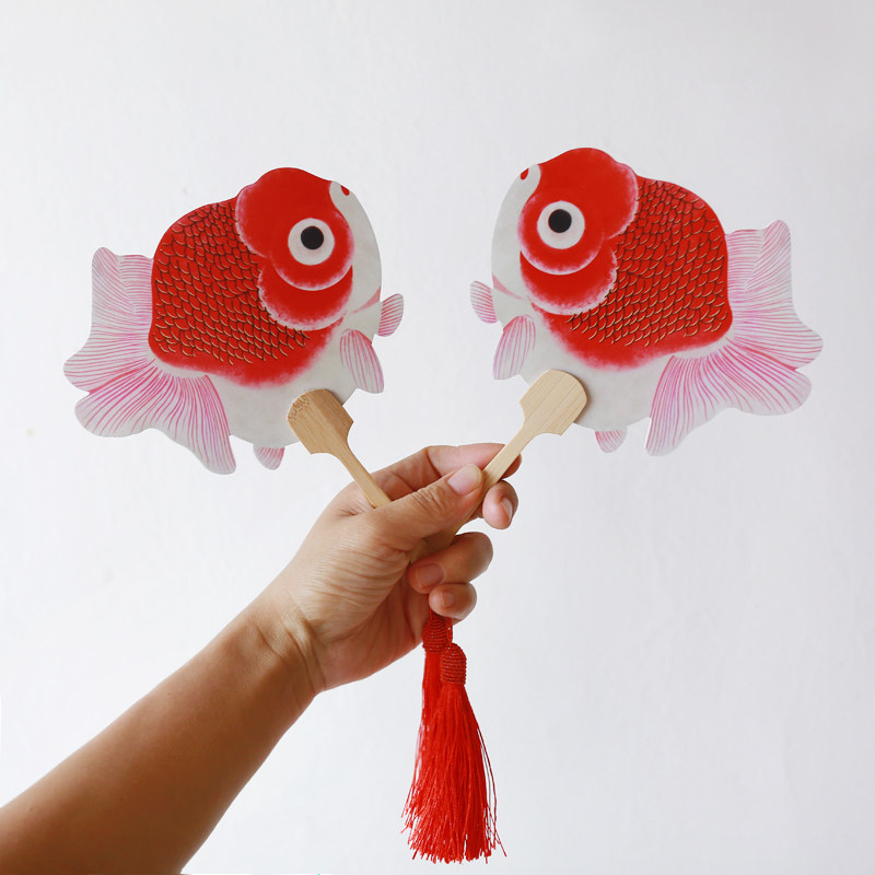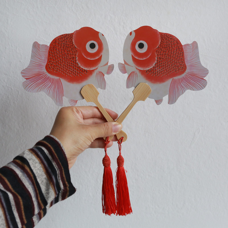 新中式婚纱照红色喜嫁风摄影道具手拿红金鱼扇子儿童写真拍照道具