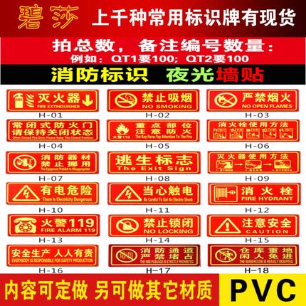 灭火器消火栓消防栓使用方法说明标识牌PVC夜光贴安全提示指示标志牌