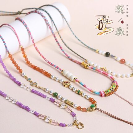 藏式手工编织项链绳蜜蜡和田玉