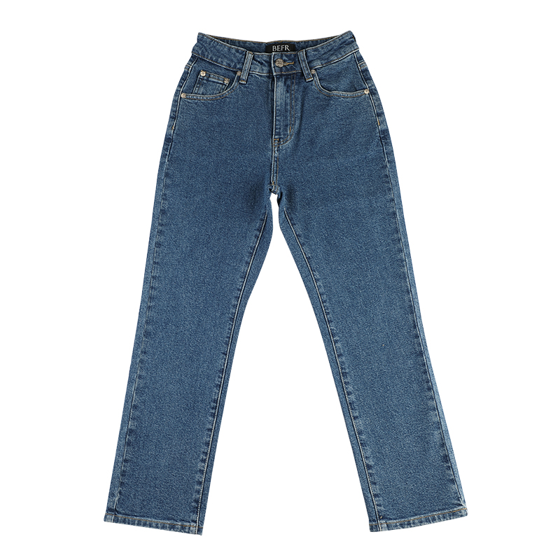 GPOD BEFR烟管美式水洗蓝色复古修身高腰小直筒牛仔裤女2025新款2