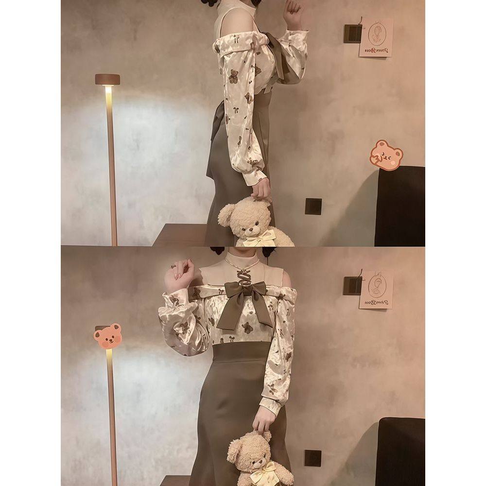 【千金可露丽】小熊拼接露肩蝴蝶结连衣裙甜美漫系少女清楚系裙子