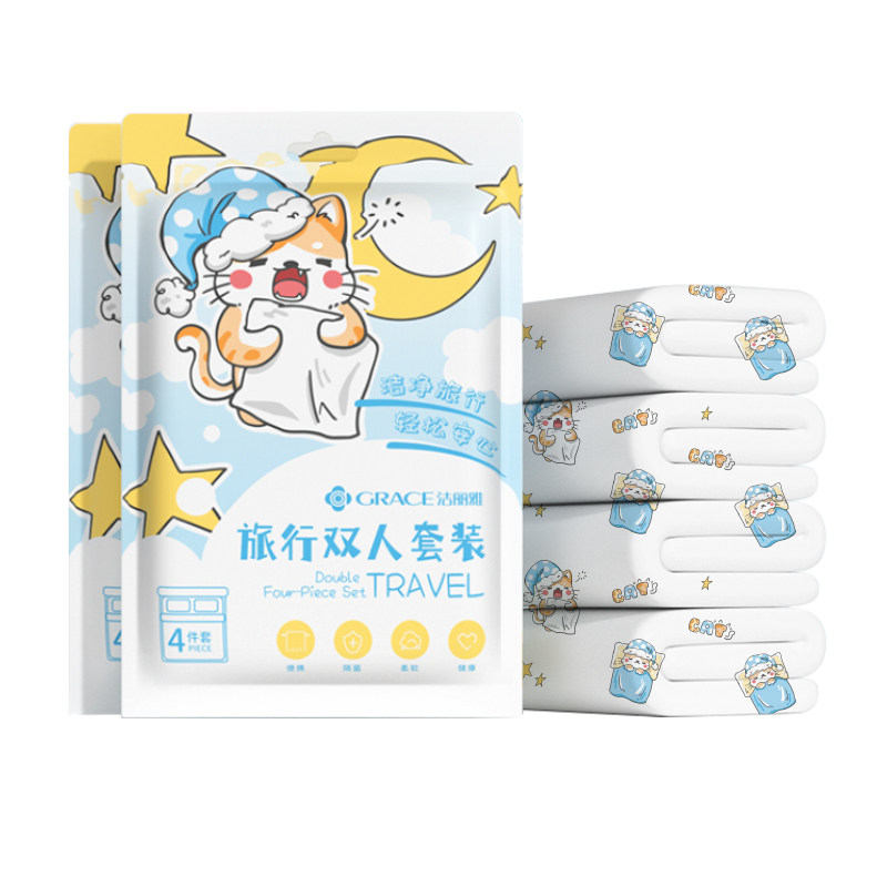 洁丽雅一次性床上四件套旅行床单被罩枕套床品住酒店双人加厚隔脏