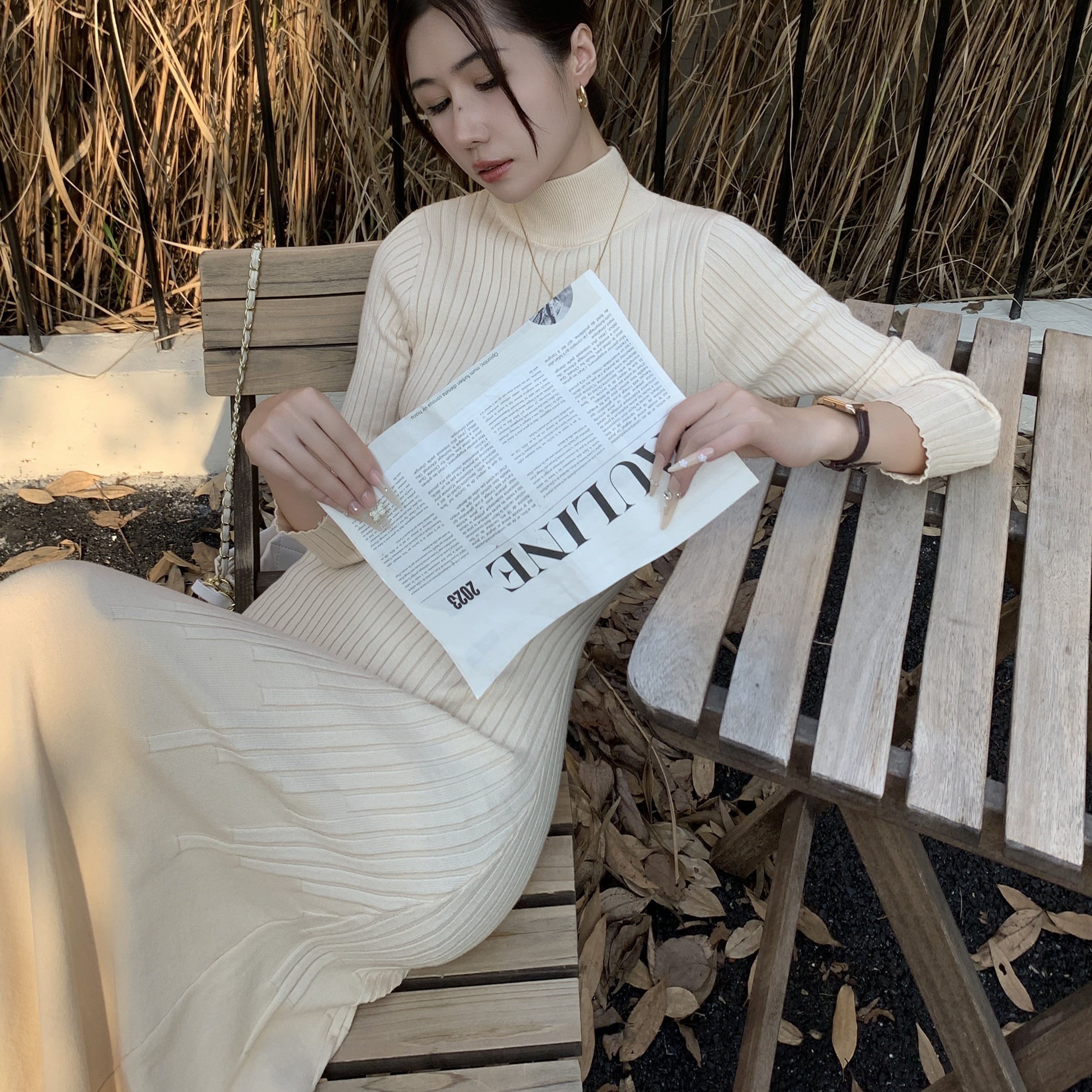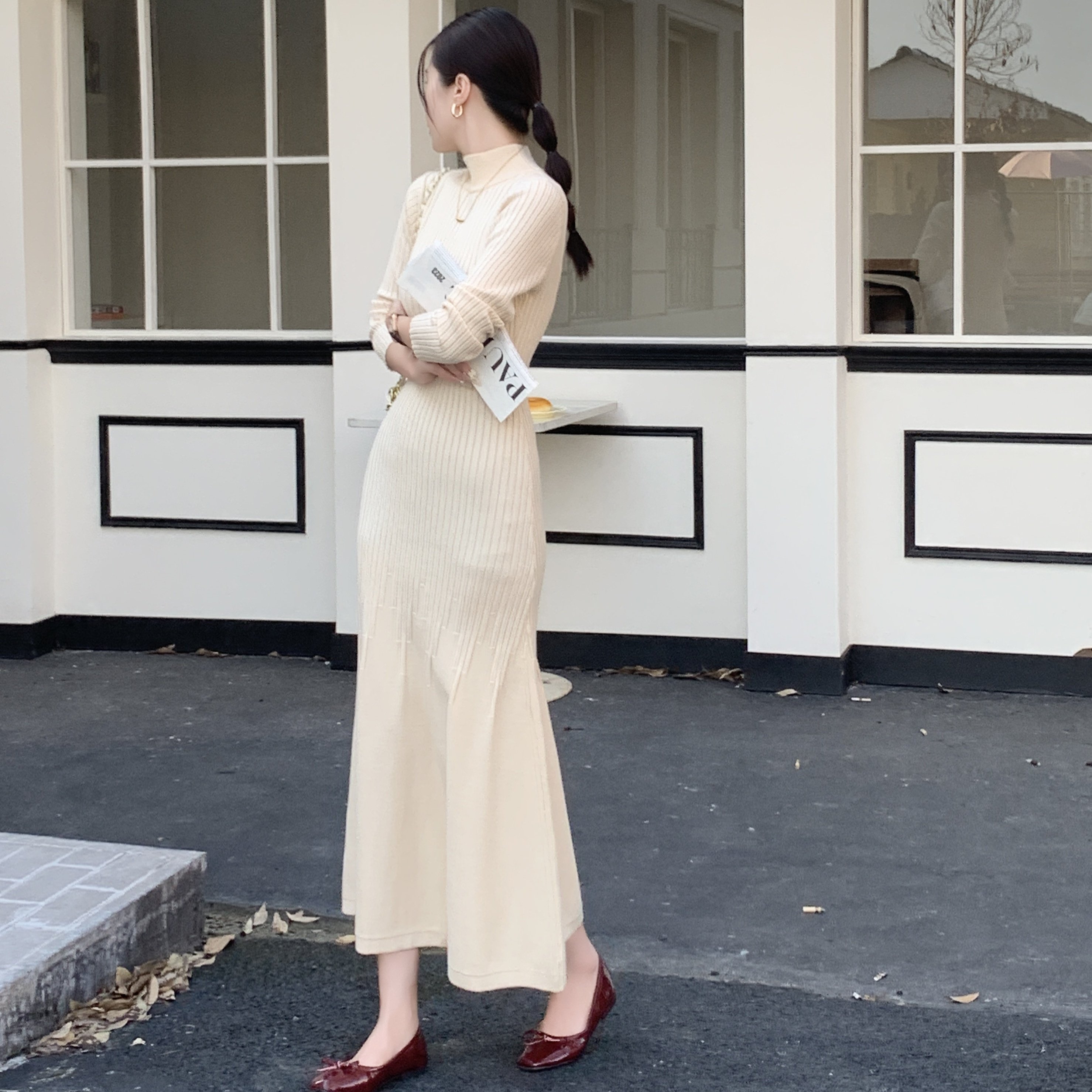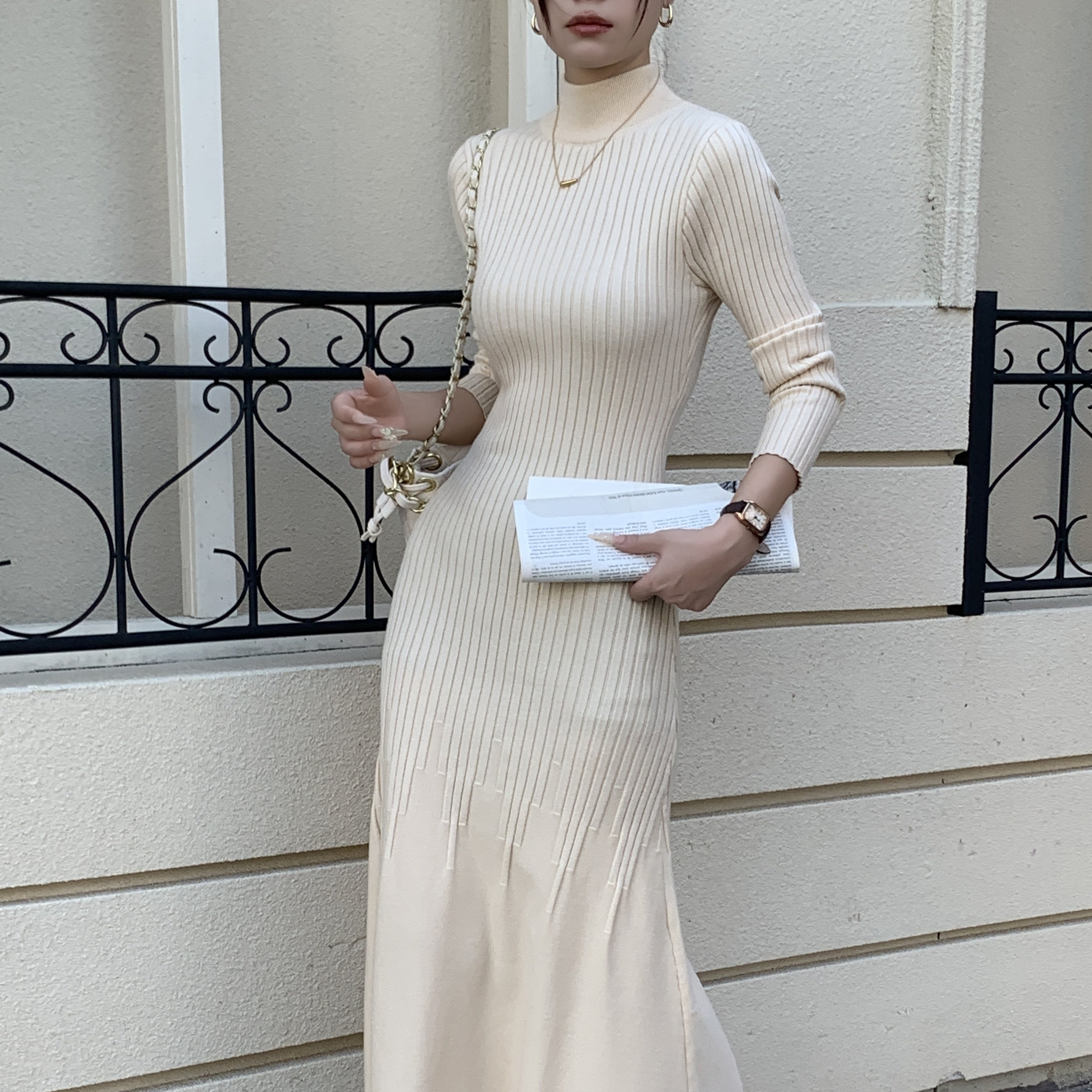 2025秋冬新款轻熟风内搭针织连衣裙时髦洋气修身显瘦半高领鱼尾裙