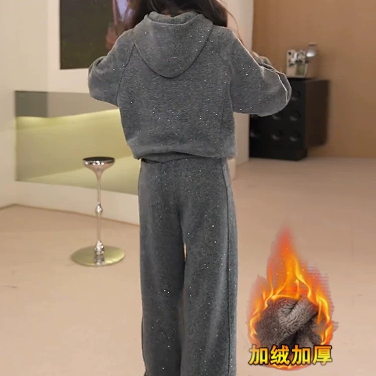 专柜巨好看冬装套装韩系时尚加绒加厚连帽卫衣阔腿裤休闲两件套潮