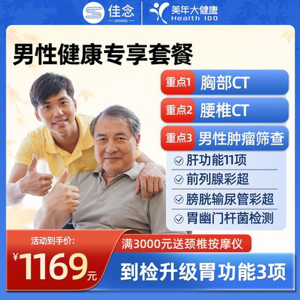 美年大健康高端男性体检套餐体检卡男士腰椎胸部CT幽门螺杆菌筛查