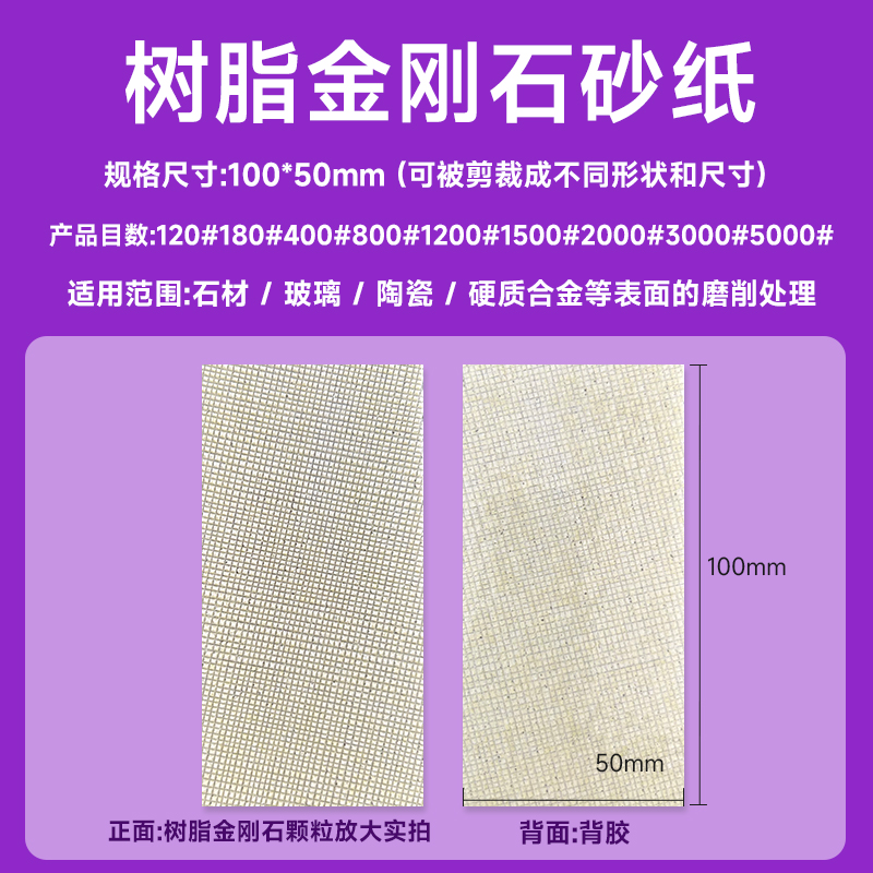 树脂金刚石砂纸100*50mm金属陶瓷玻璃打磨抛光金刚砂砂布自粘背胶
