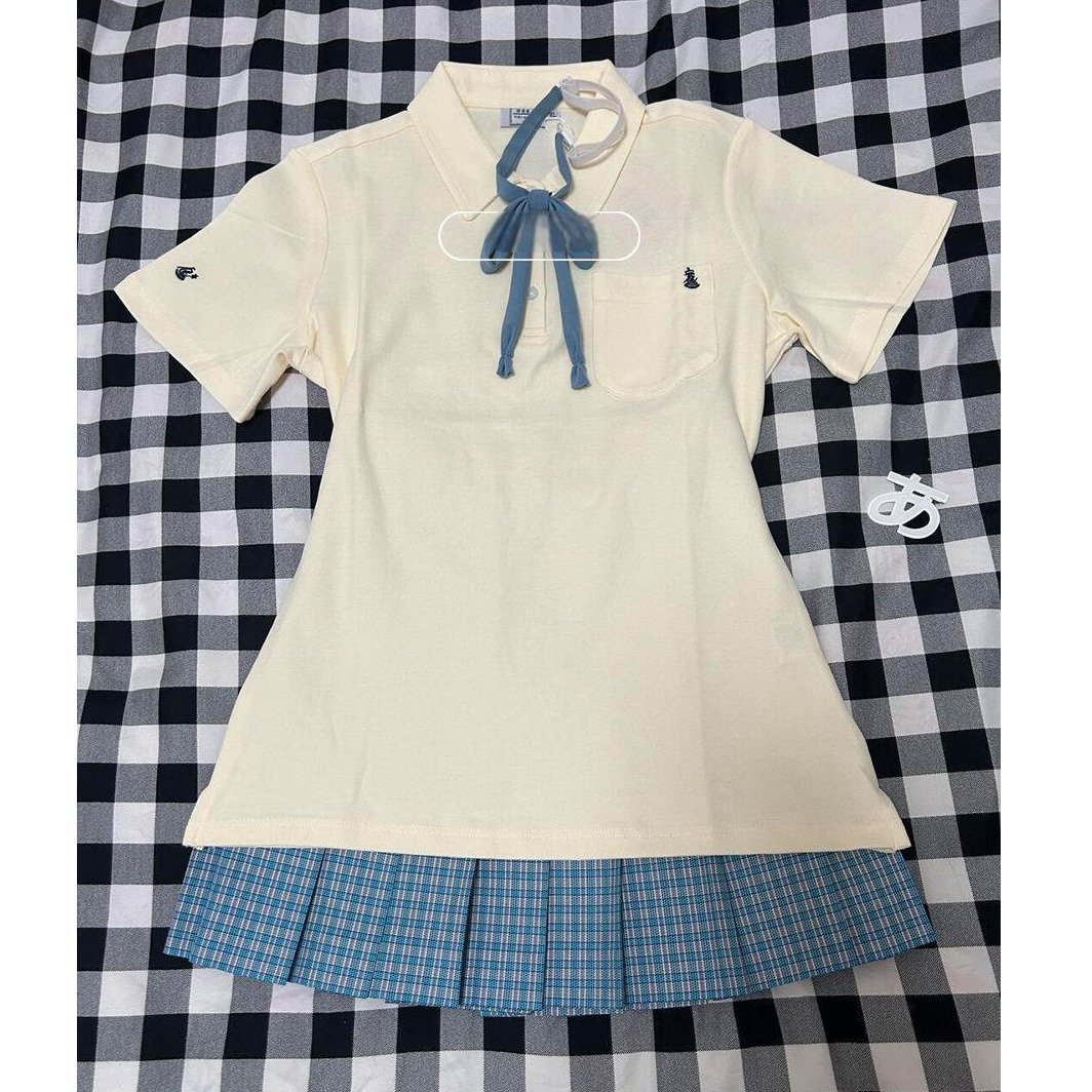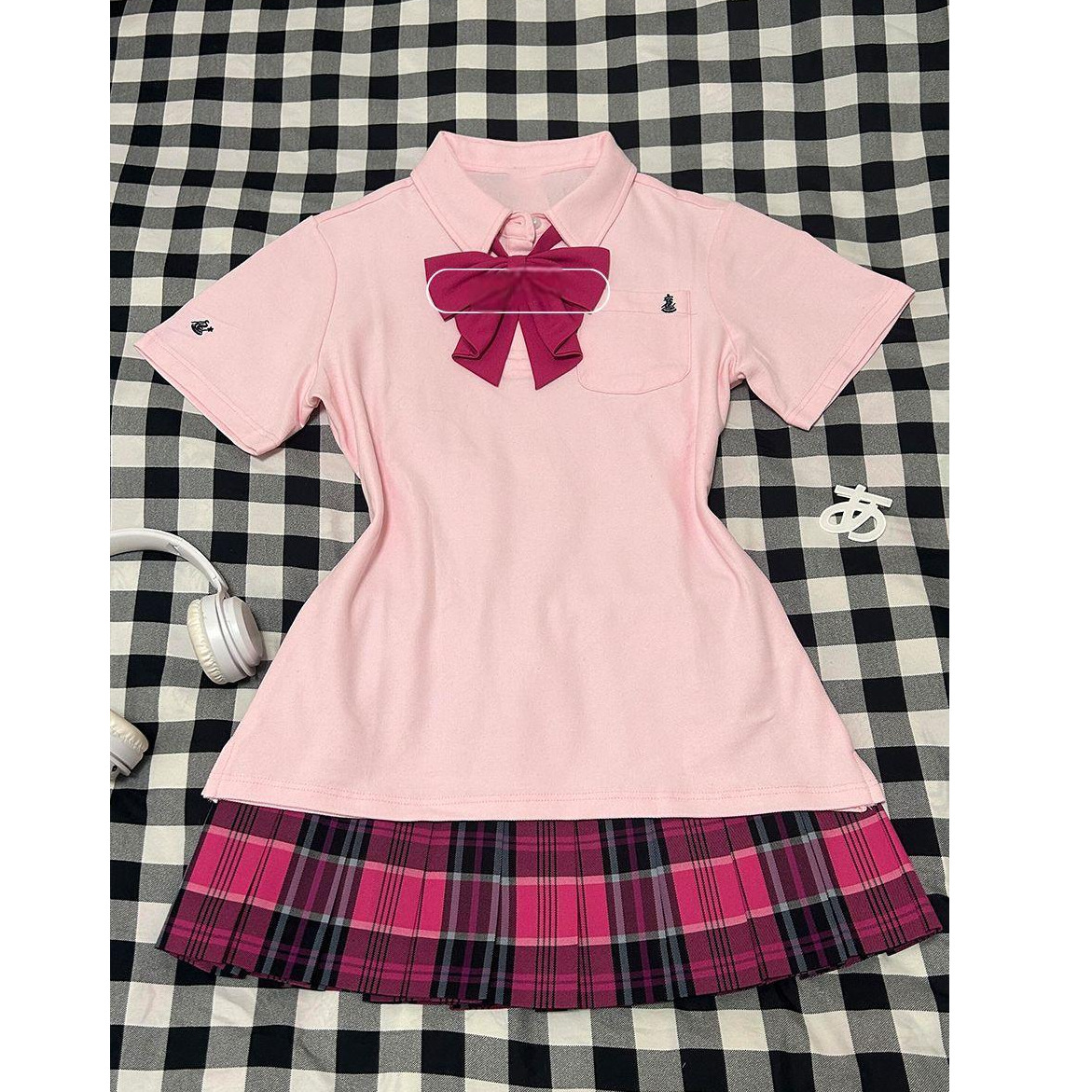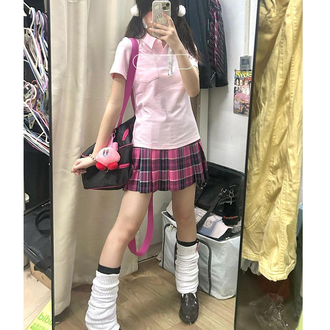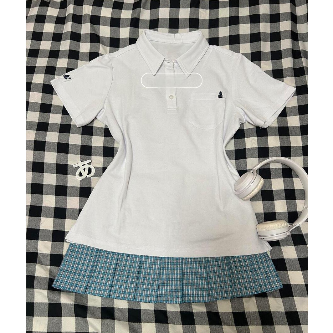 胖MM大码JK制服收腰Polo衫格裙套装日系学院风校供感刺绣短袖上衣