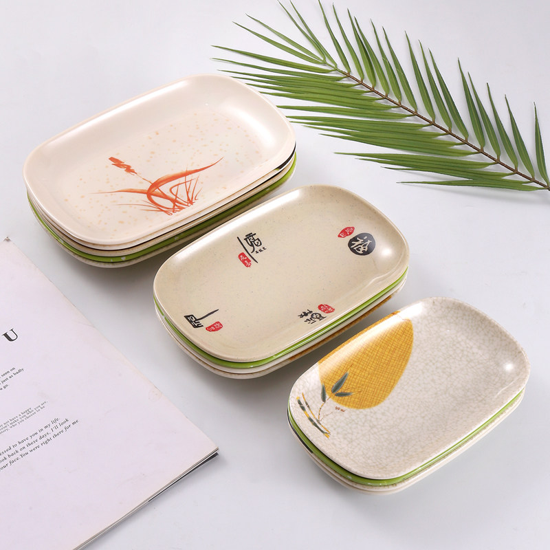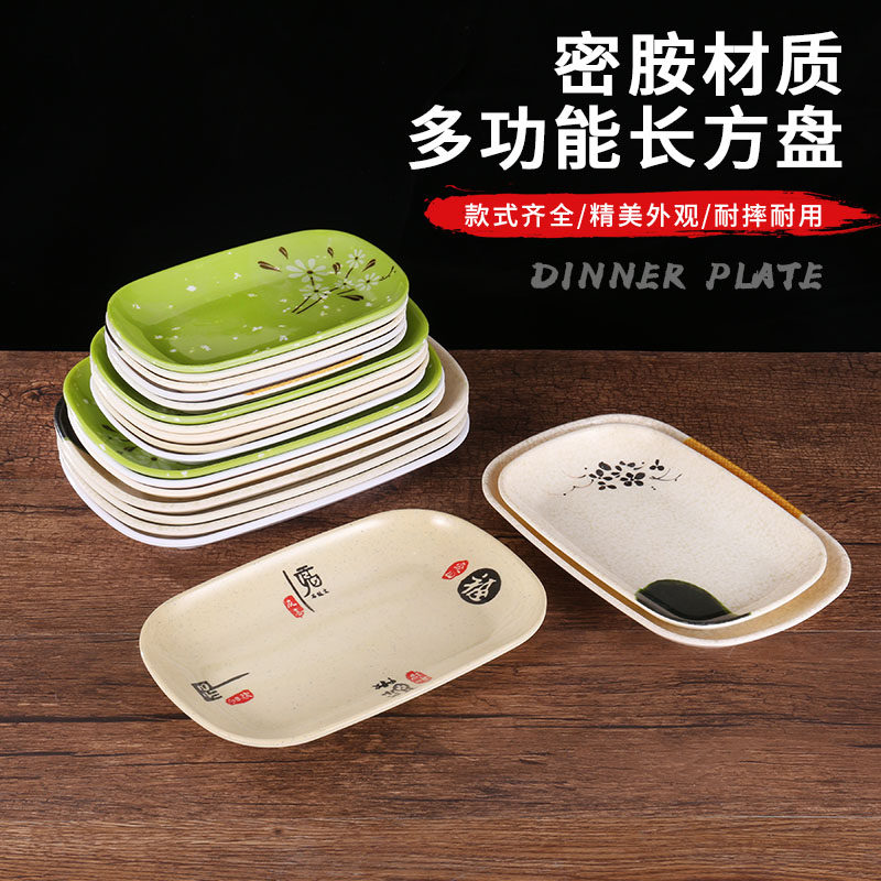 10个装密胺长方形盘子商用肠粉盘子塑料菜盘子餐具火锅烧烤盘子碟