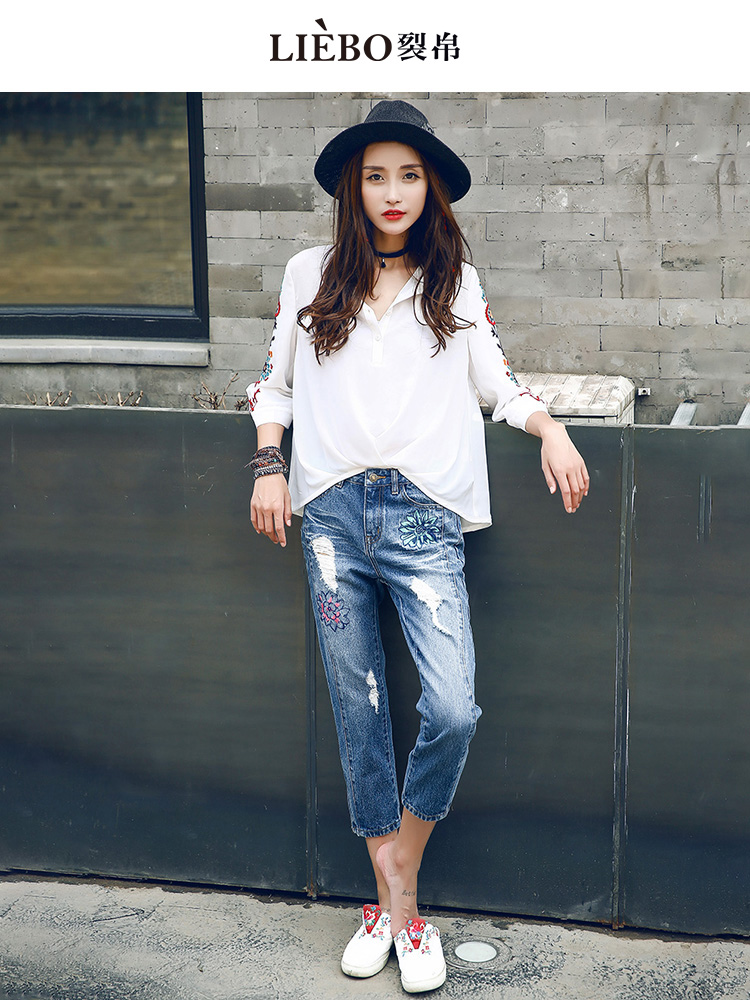裂帛花朵刺绣薄荷曼波简约前短后长雪纺垂顺长袖衬衫上衣女