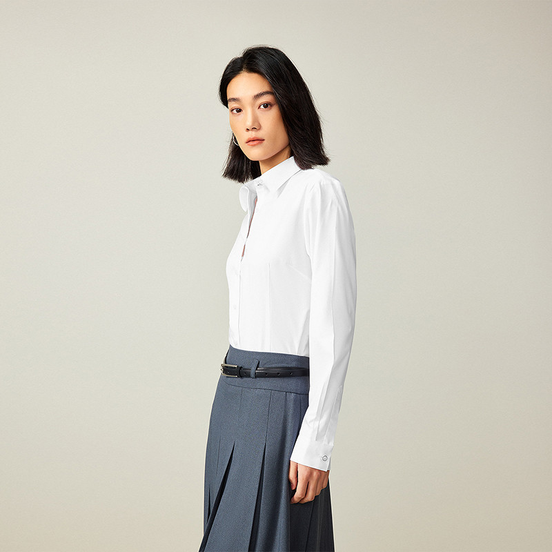 HLA/海澜之家商务通勤长袖正装衬衫25春秋新翻领气质面试衬衣女装