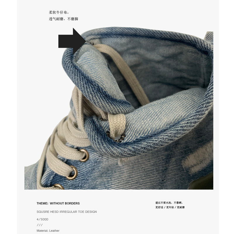 FangEven工装户外登山鞋男女厚底马丁靴高密牛仔破洞高帮大头靴