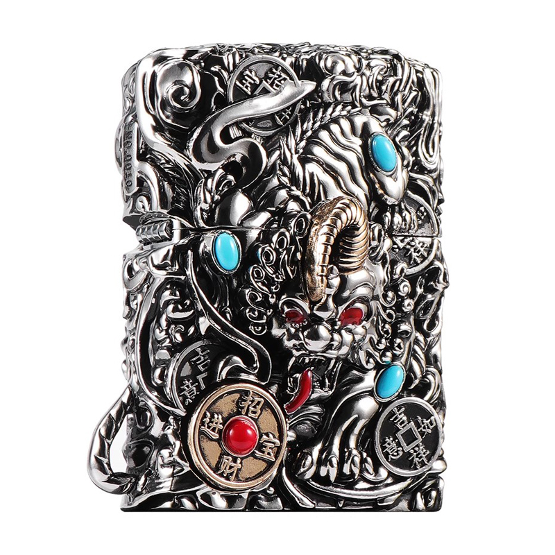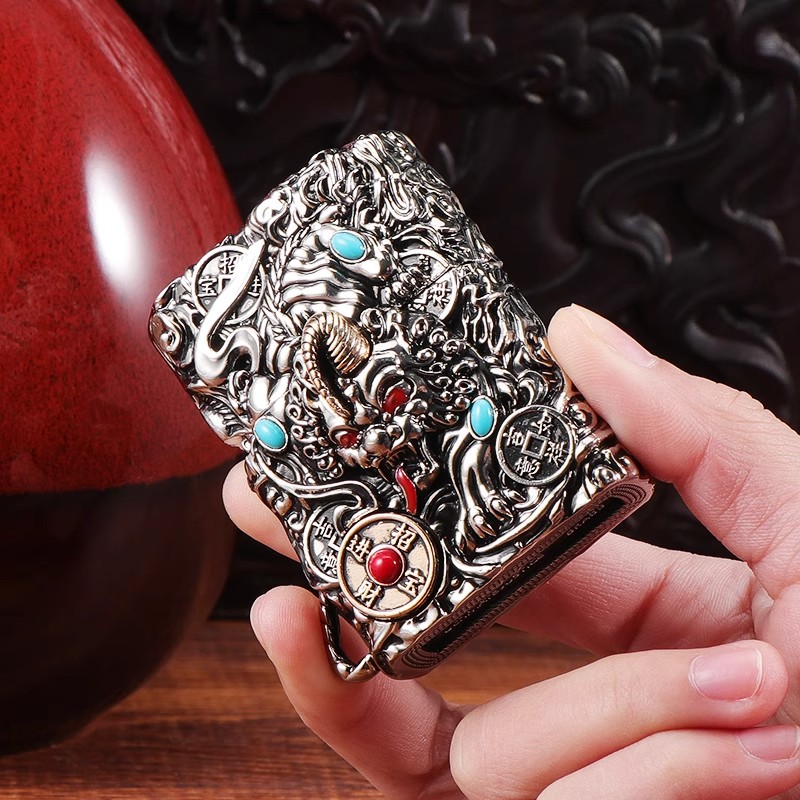 佐罗煤油打火机可转动把玩解压盔甲砂轮机厚重天禄貔貅送男友礼品