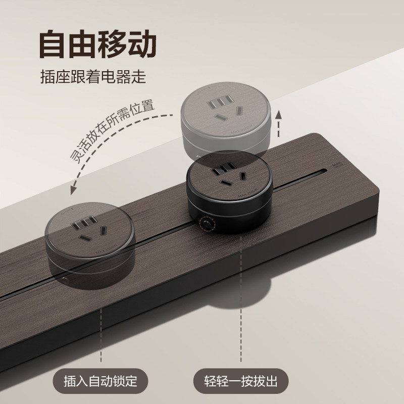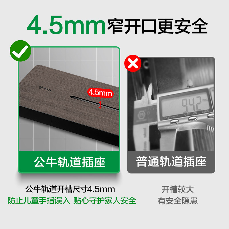 公牛可移动轨道插座厨房家用排插8000w木纹卧室客厅办公餐边柜