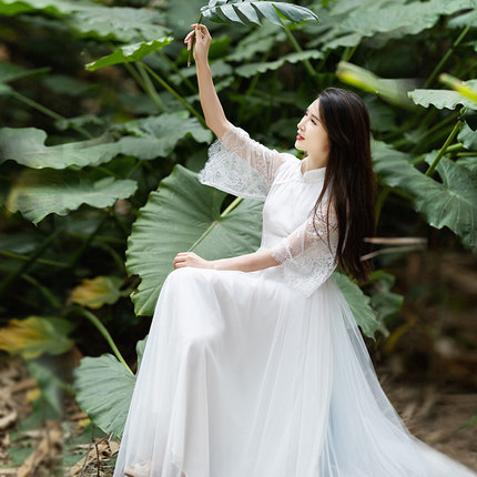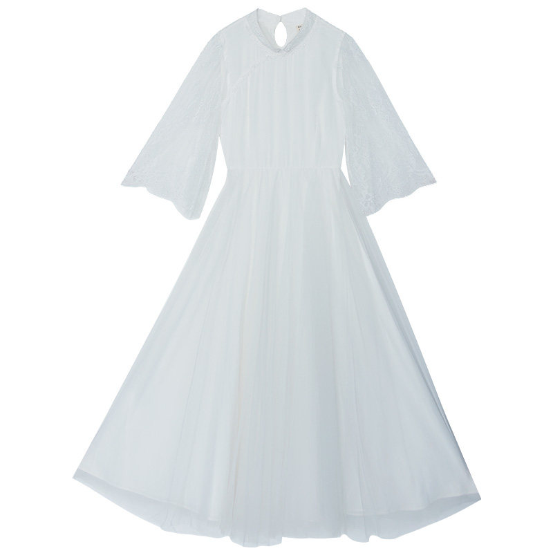 【158元区】春装气质修身裙子新款白色连衣裙女长款高腰仙女长裙