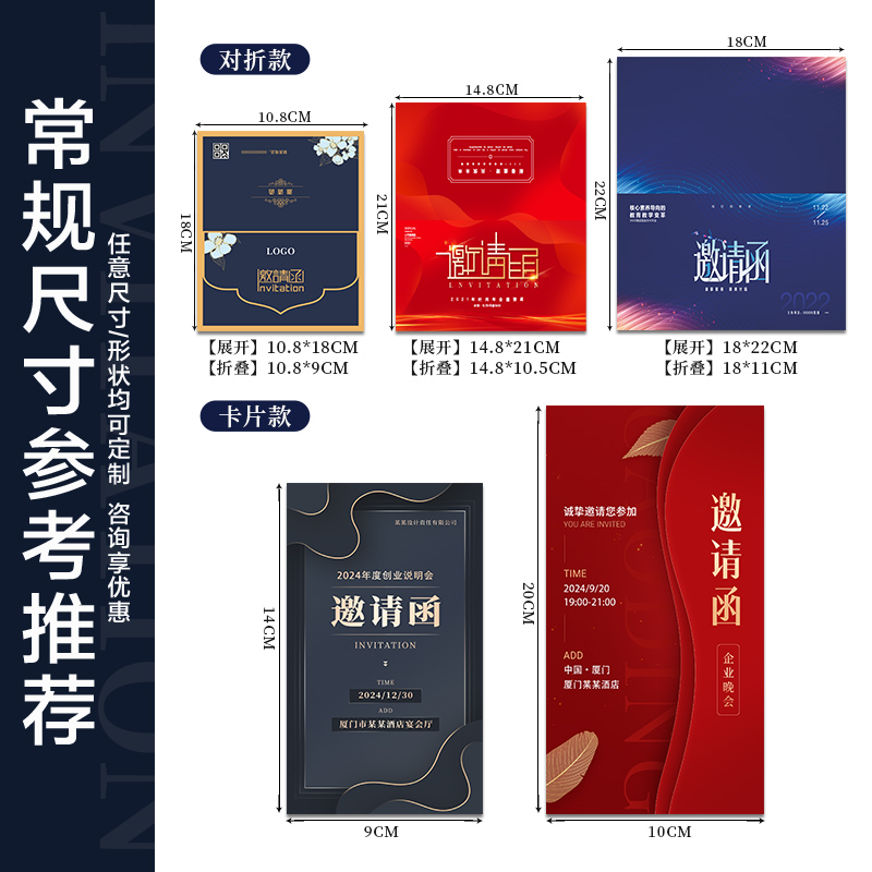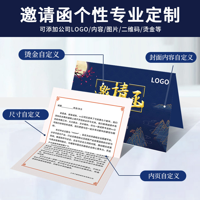 对折邀请函定制公司商务年会周年庆活动节目单小贺卡设计红色请帖入场券感谢卡企业会议请柬卡片制作硬卡印刷