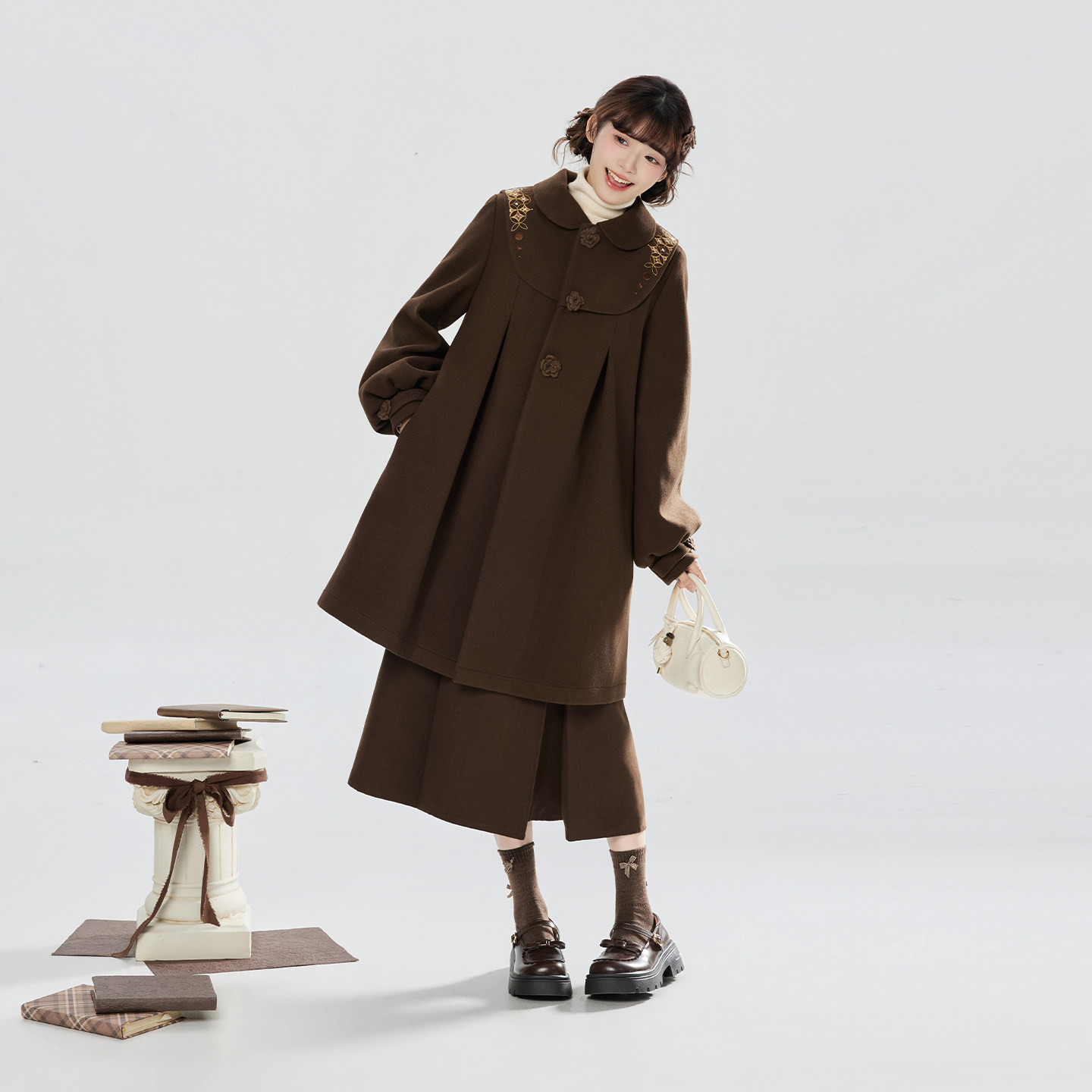 织造司[冬序热茶]学院风套装大衣外套上衣女针织打底衫吊带连衣裙