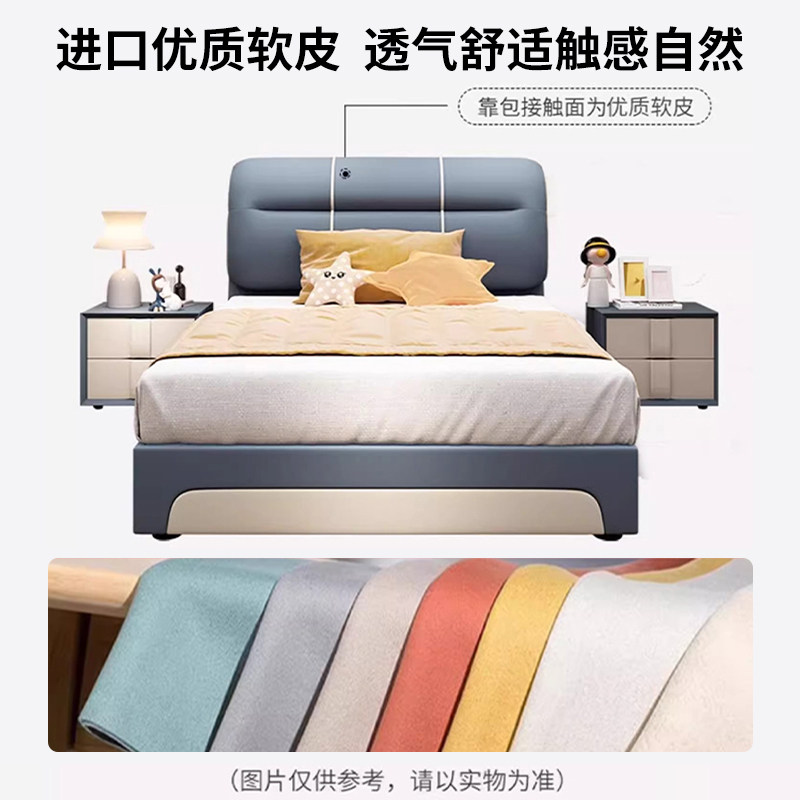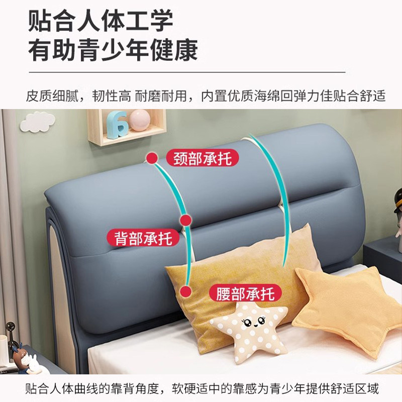 简约皮床儿童次卧室北欧风储物床