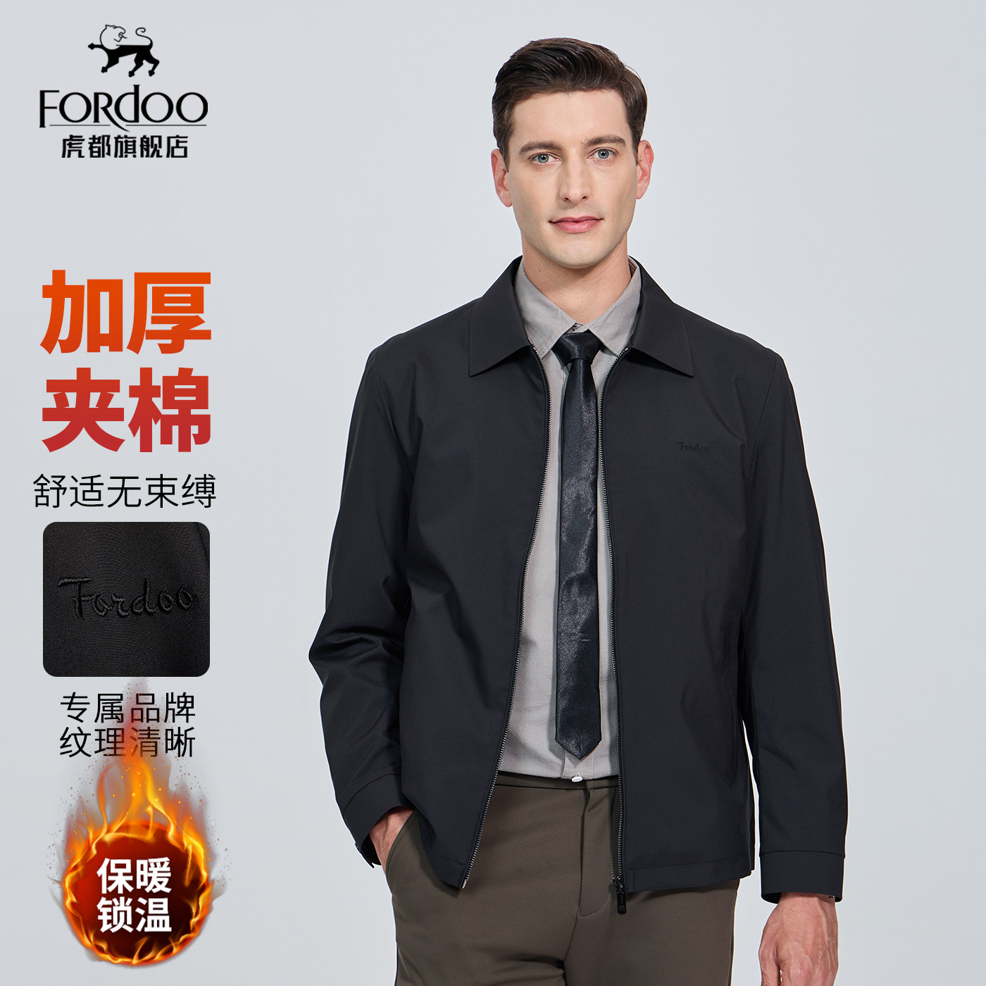 【夹棉内里】虎都翻领夹克男2025冬季新款商务休闲保暖棉衣服外套