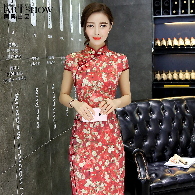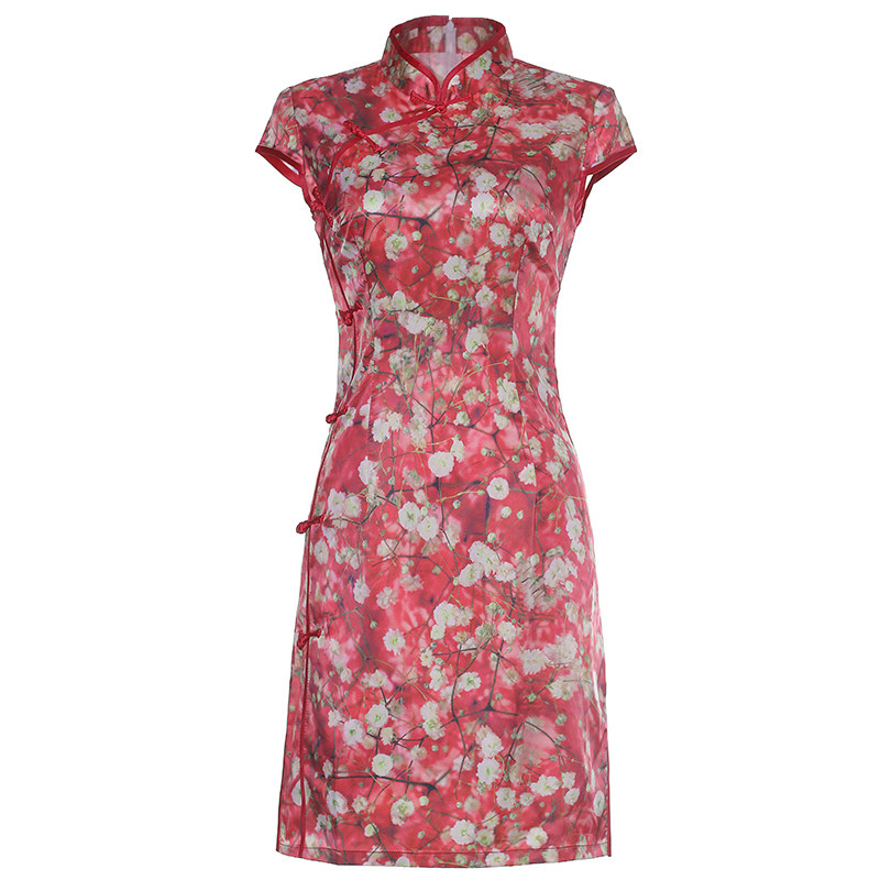 改良真丝旗袍夏季2025新款年轻款女短款修身性感日常复古红色短裙