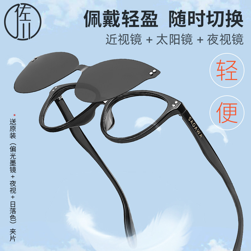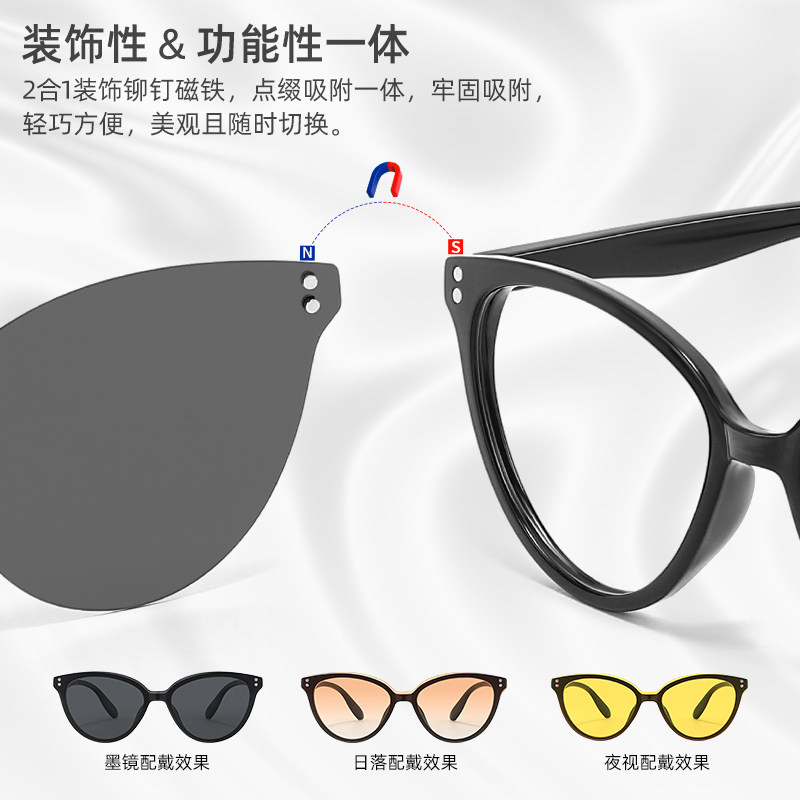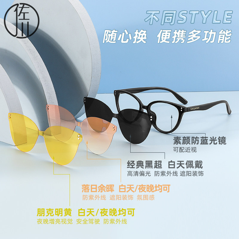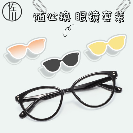 【免费配度数】佐川一镜四用时尚猫眼防蓝光眼镜女文艺TR眼镜架男