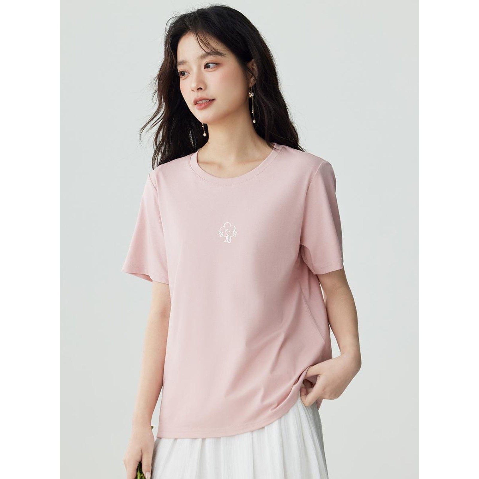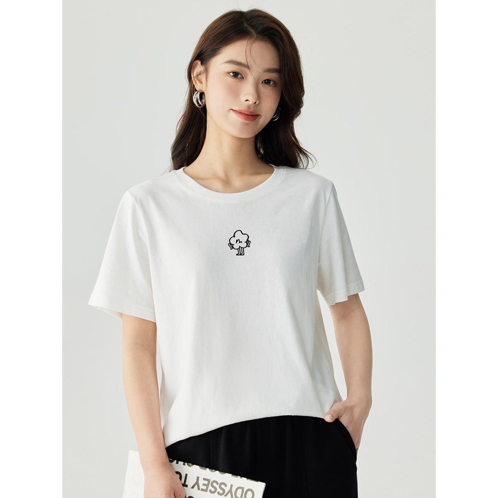 茵曼全棉印花舒适短袖白T恤女夏季基础百搭宽松休闲上衣