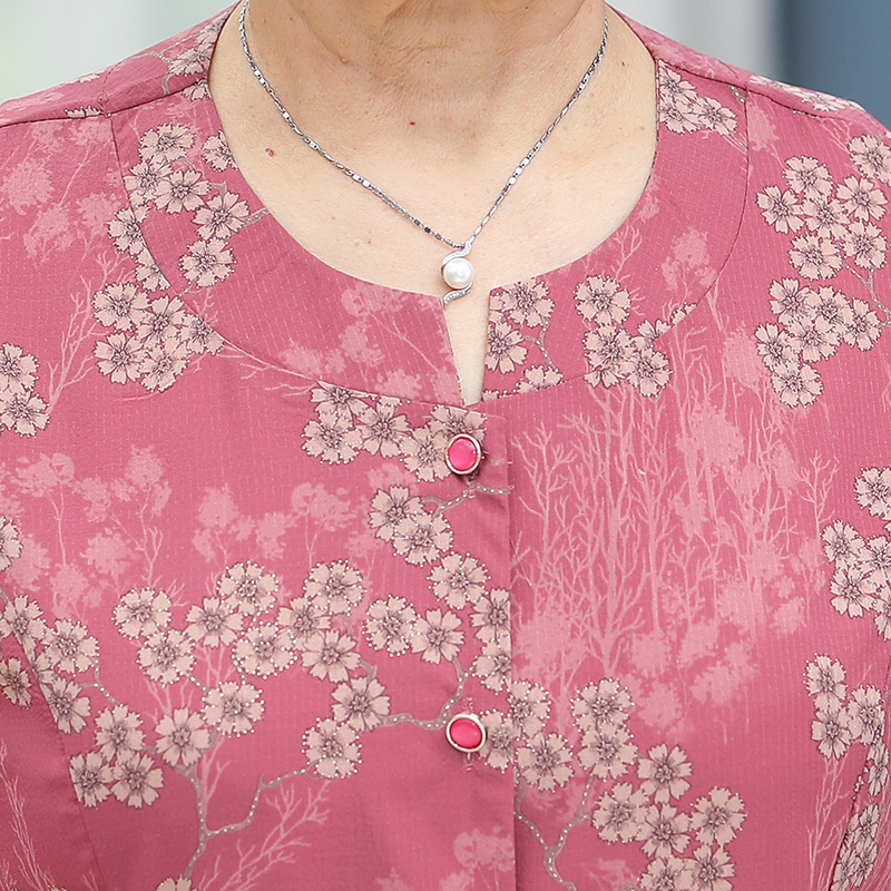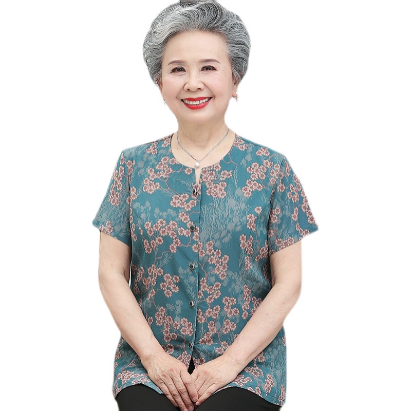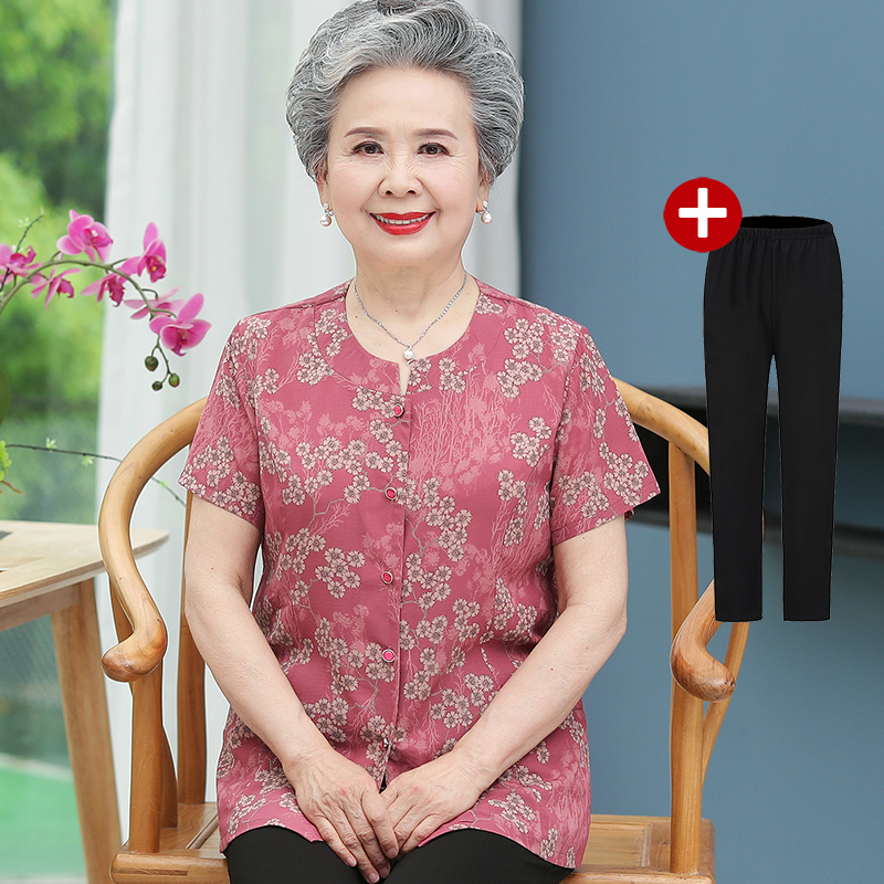 奶奶夏装套装短袖老年人女雪纺上衣老太太70岁80老人上衣服有口袋