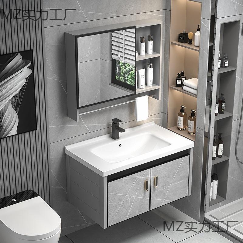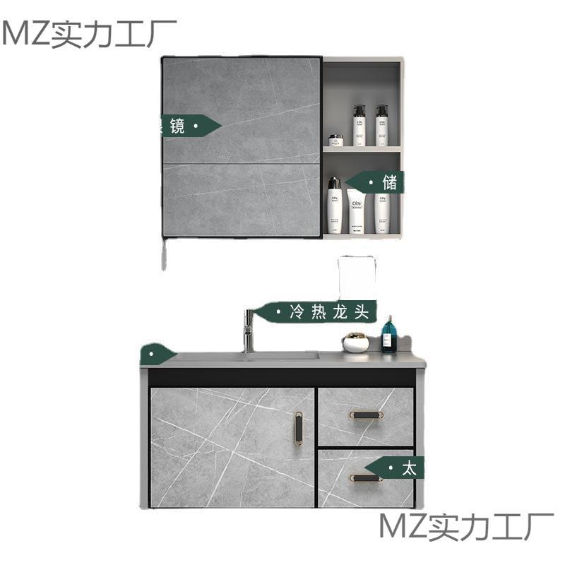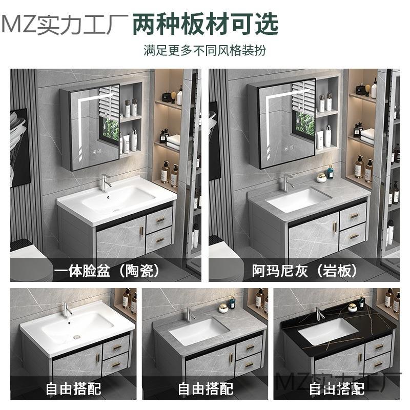 网红轻奢岩板太空铝合金浴室柜组合小户型卫生间洗脸盆陶瓷一体