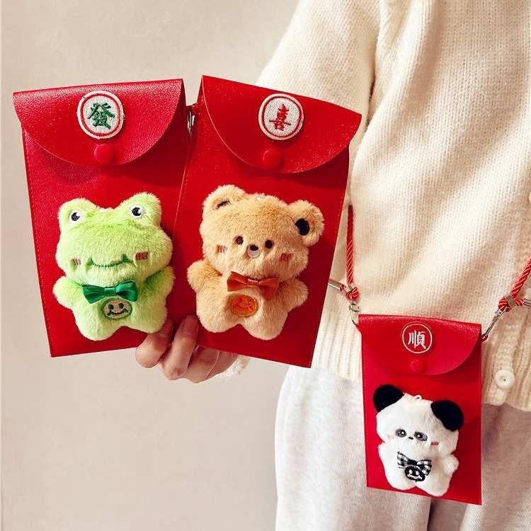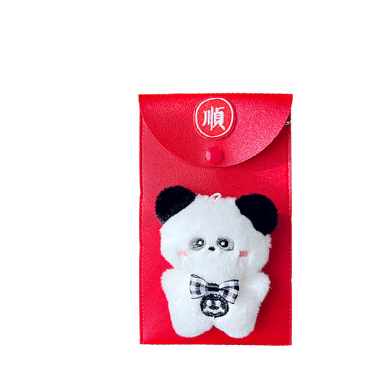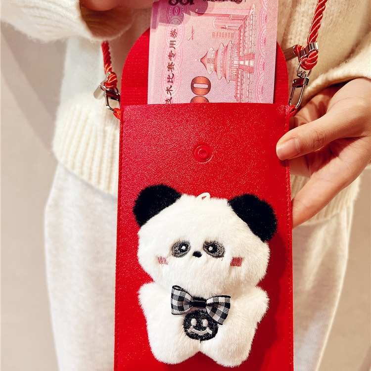 喜庆pu皮质diy手工粘贴毛绒万元红包斜跨可背带挂绳利是封手机包