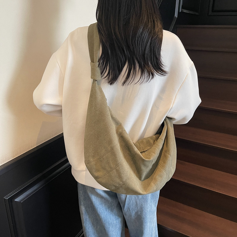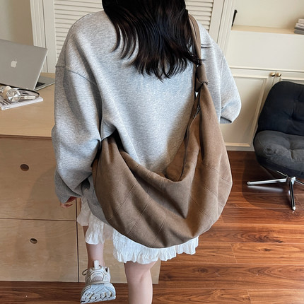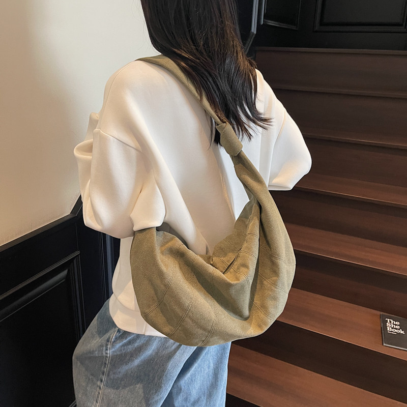 韩系慵懒风包包斜挎包女2026新款大容量饺子包通勤单肩小众牛角包
