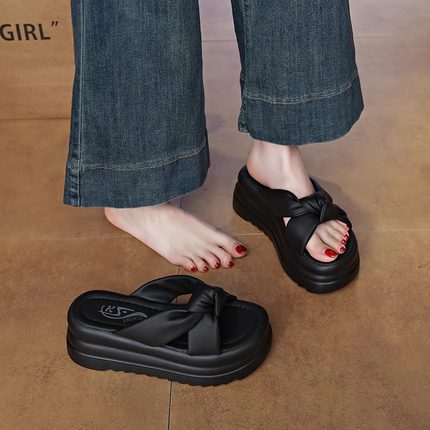超火厚底增高小个子绝美凉拖鞋女夏外穿2025新款配裙子沙滩一字拖