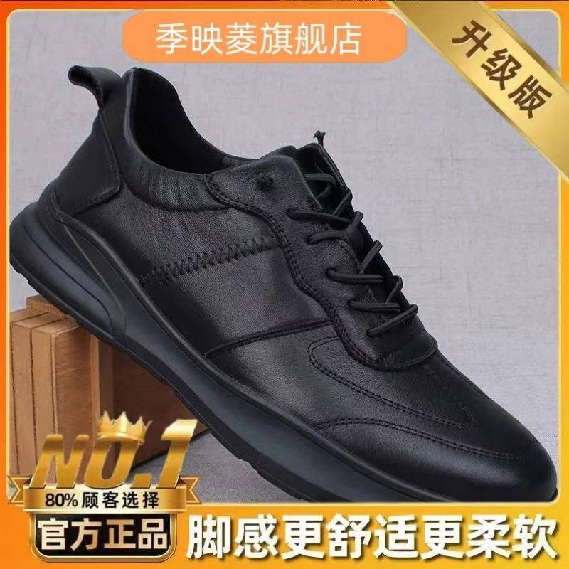 软皮鞋2025春秋新款男士休闲皮鞋软底商务百搭黑色韩版潮流男鞋