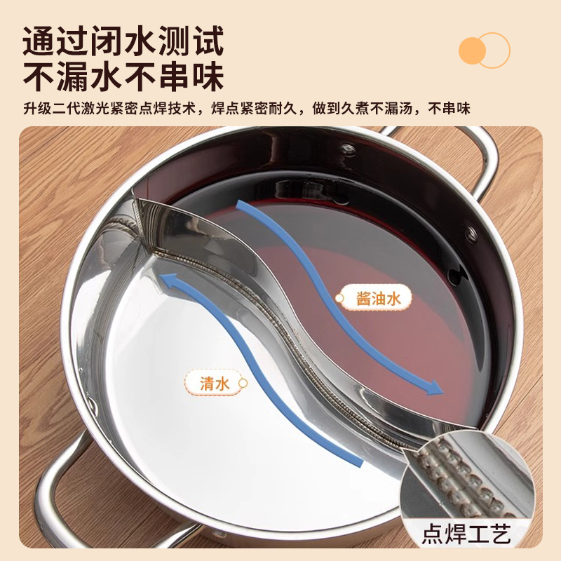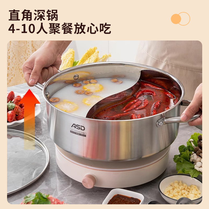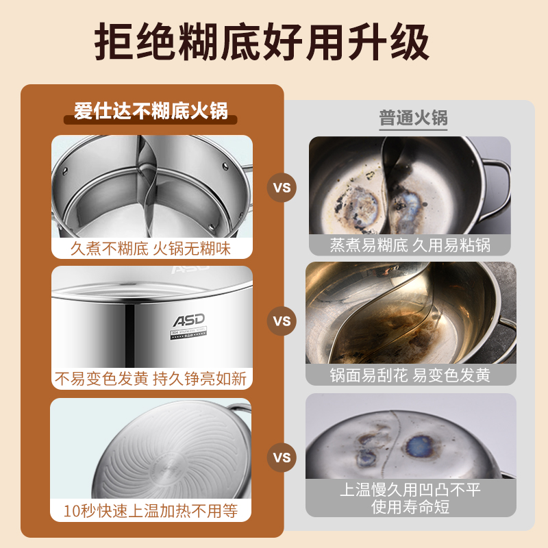 爱仕达鸳鸯锅清汤锅火锅家用电磁炉专用加厚304不锈钢盆官方正品