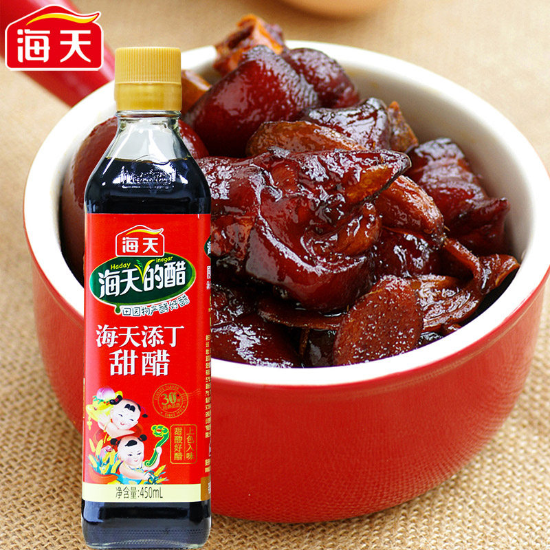 海天添丁甜醋450ml广东甜醋猪脚姜月子醋家用煲猪蹄酿造醋黑米醋