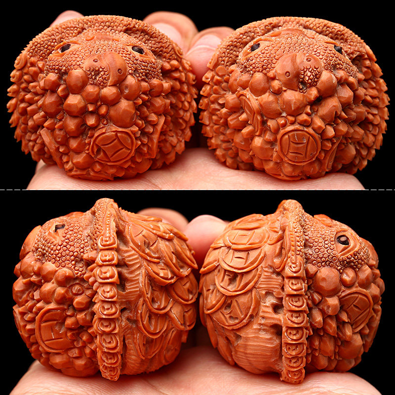 白狮子雕刻金蟾蛤蟆文玩核桃