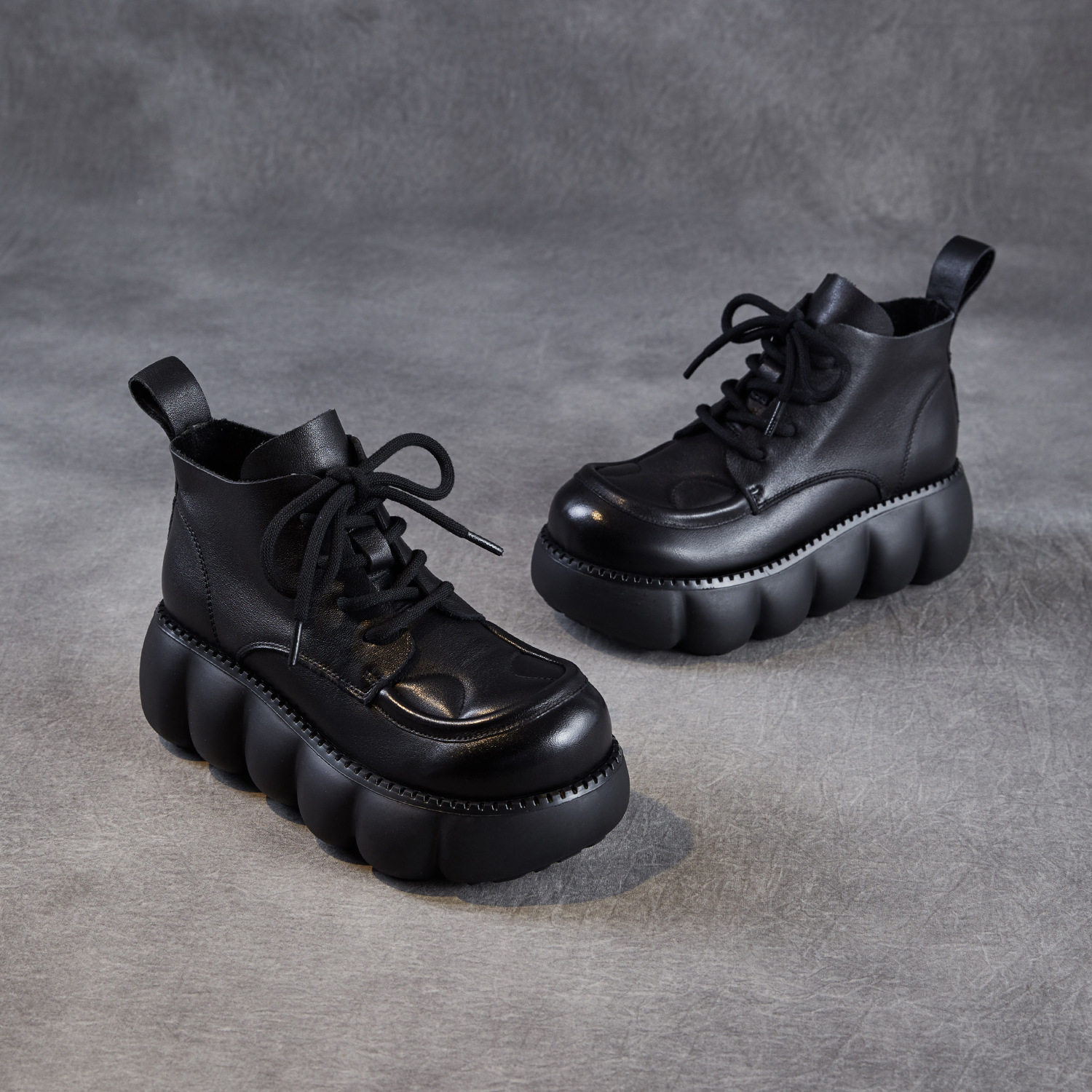 头层牛皮~高端女鞋~真皮短靴厚底松糕底轻便马丁靴单靴春秋冬季