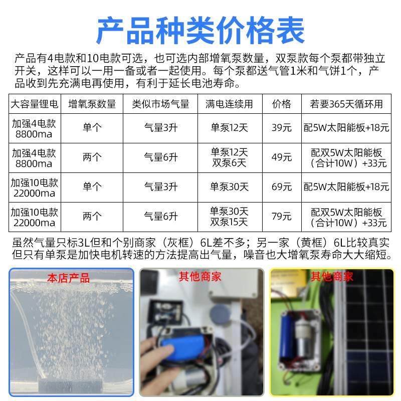 太阳能增氧泵超静音锂电池充电水培植物鱼缸鱼池养鱼加氧气冲氧泵
