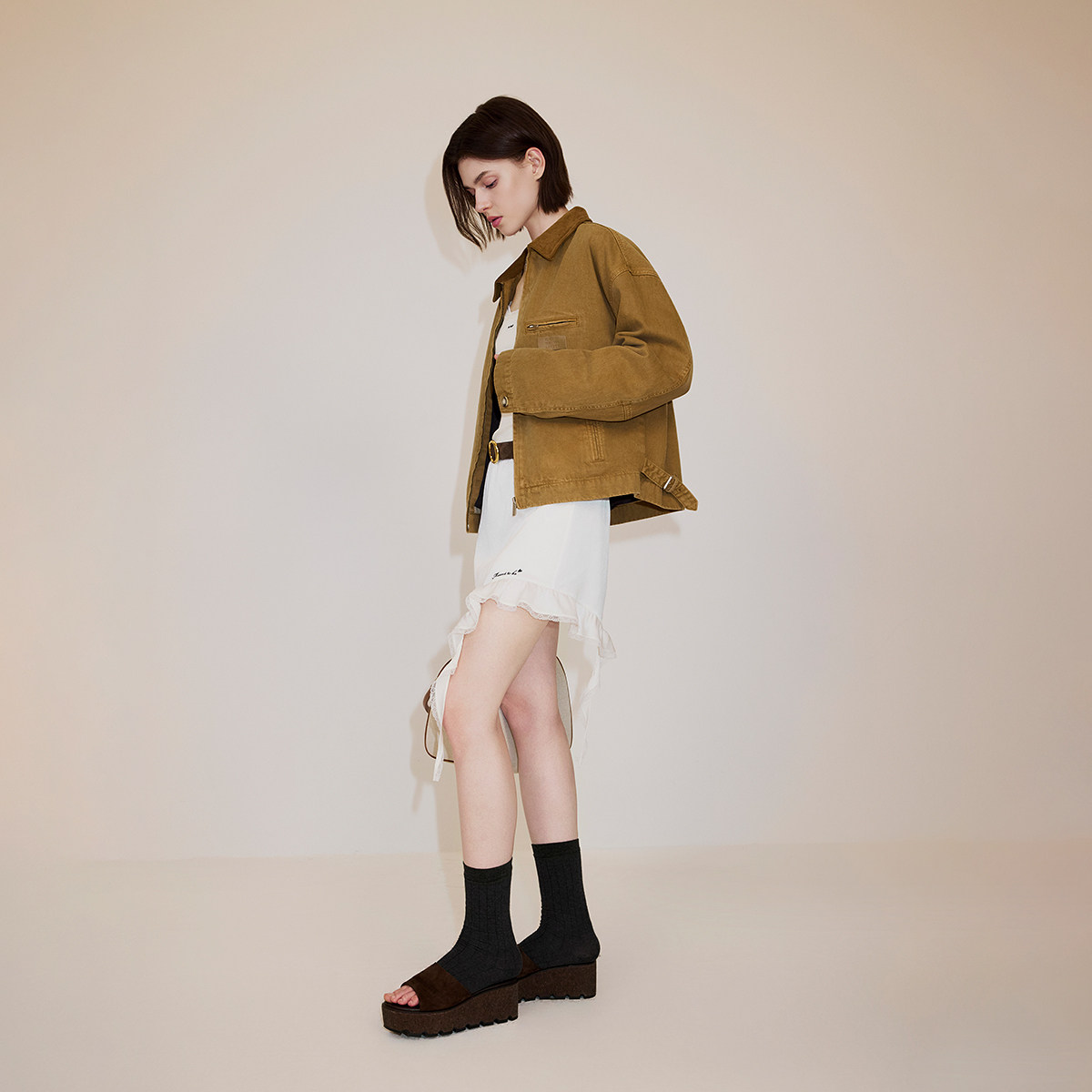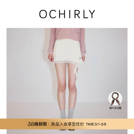 【新品】OCHIRLY欧时力 蕾丝花边不对称缎面a字半身裙 绣花2026春