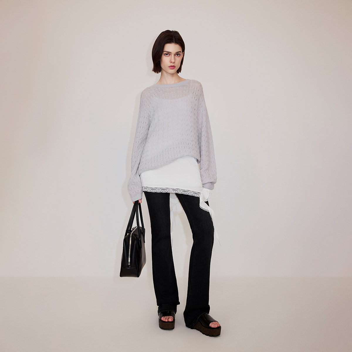 OCHIRLY欧时力绣花蕾丝缎面半裙