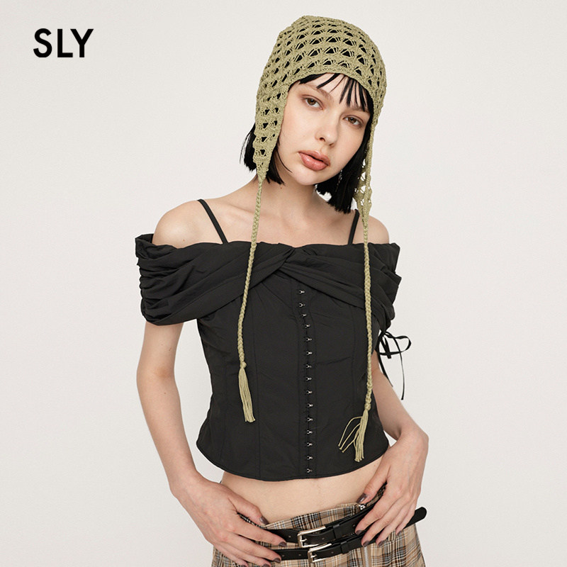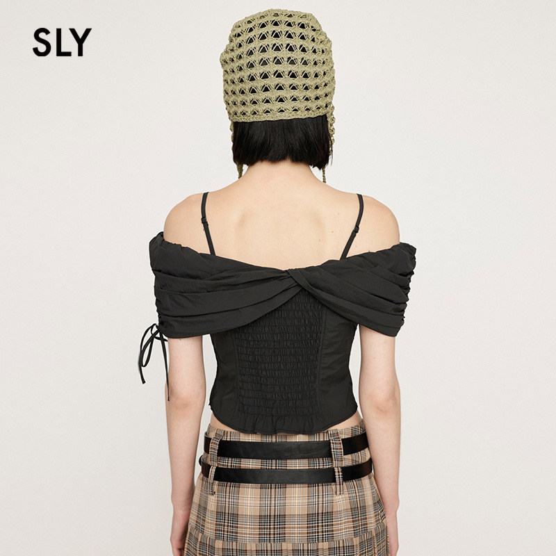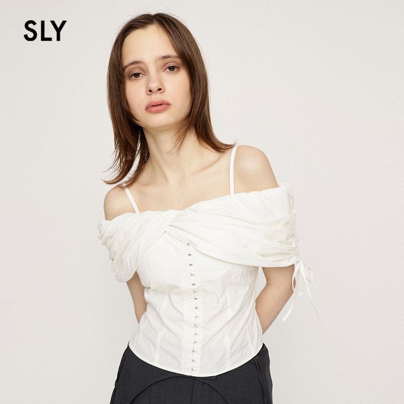 SLY 2024秋季新品设计感交叉一字肩纯欲吊带衬衫女030HAZ30-0171