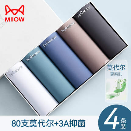 猫人80支莫代尔冰丝男士内裤男生款四角夏季薄款青少年平角短裤头