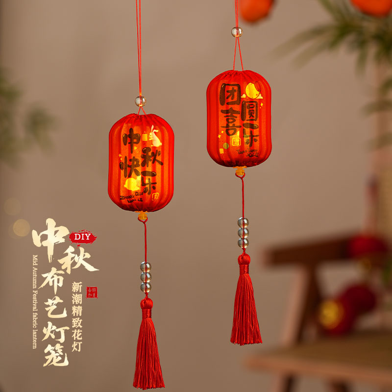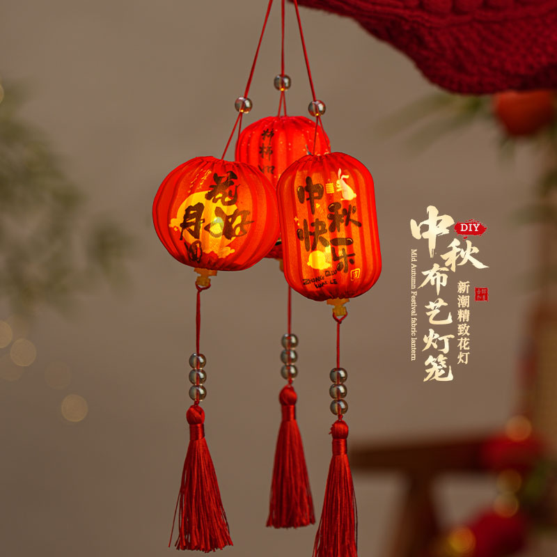 中秋节小红灯笼2025新款diy材料包儿童手提发光挂饰商场活动装扮