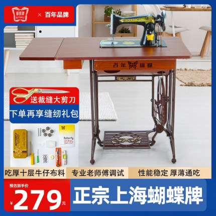 上海蝴蝶牌家用老式缝纫机正宗脚踏式手动裁缝机头可电动吃厚衣车