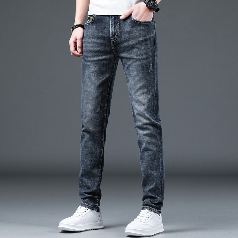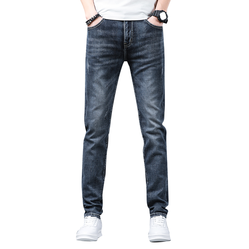 休闲自如 显腿长 春夏薄款水洗小脚牛仔裤男直筒修身休闲百搭裤子